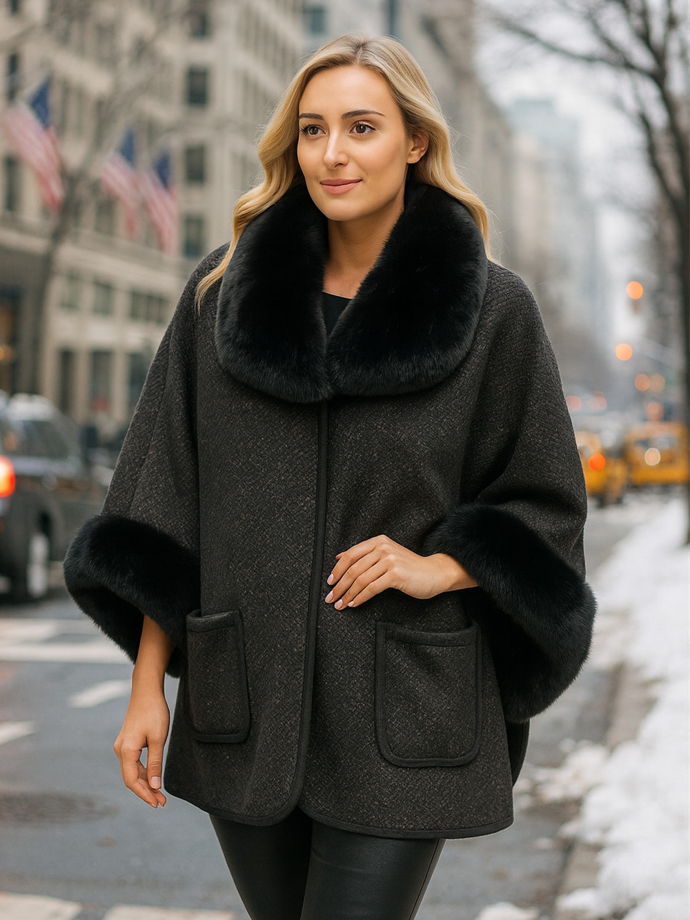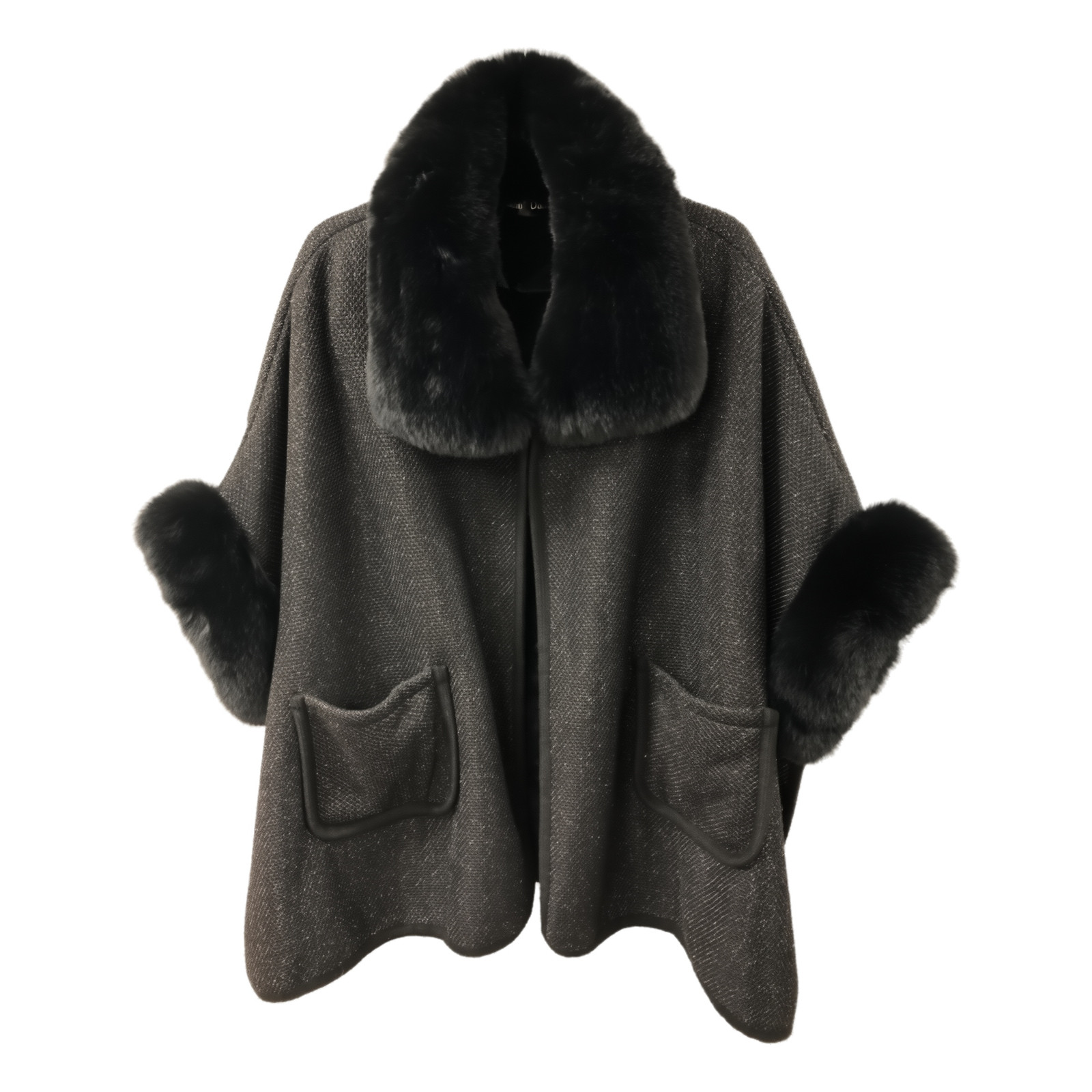 Luxurious look with a faux fur cloak & trim on the sleeves