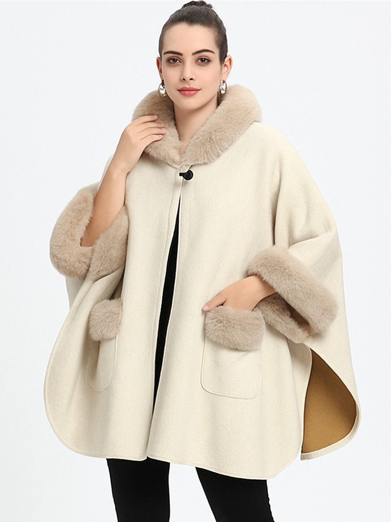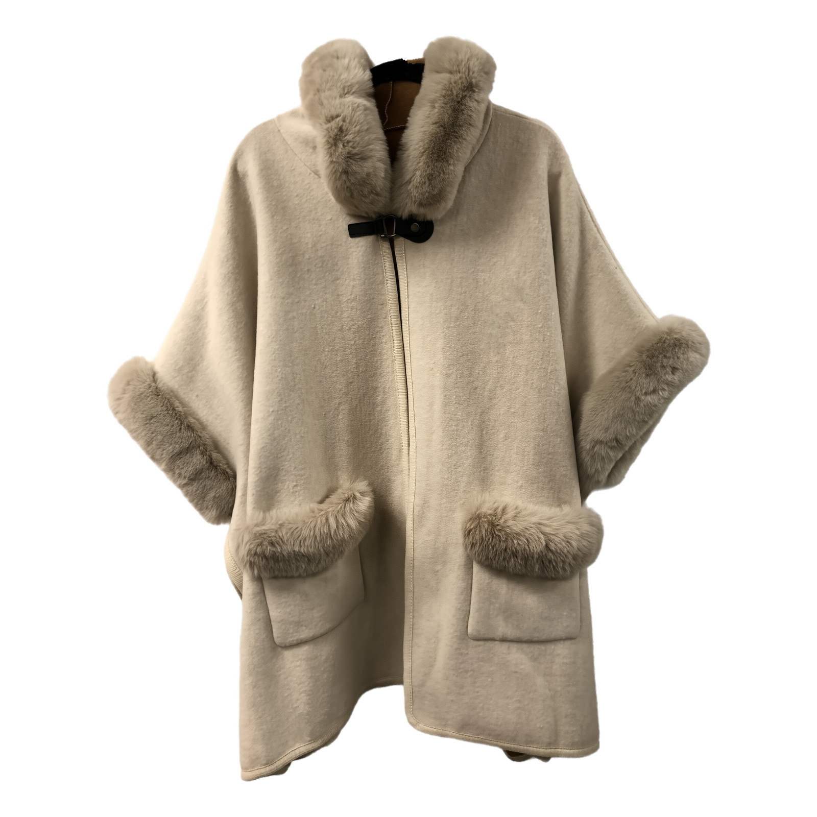 Luxurious look with a faux fur cloak & trim on the sleeves