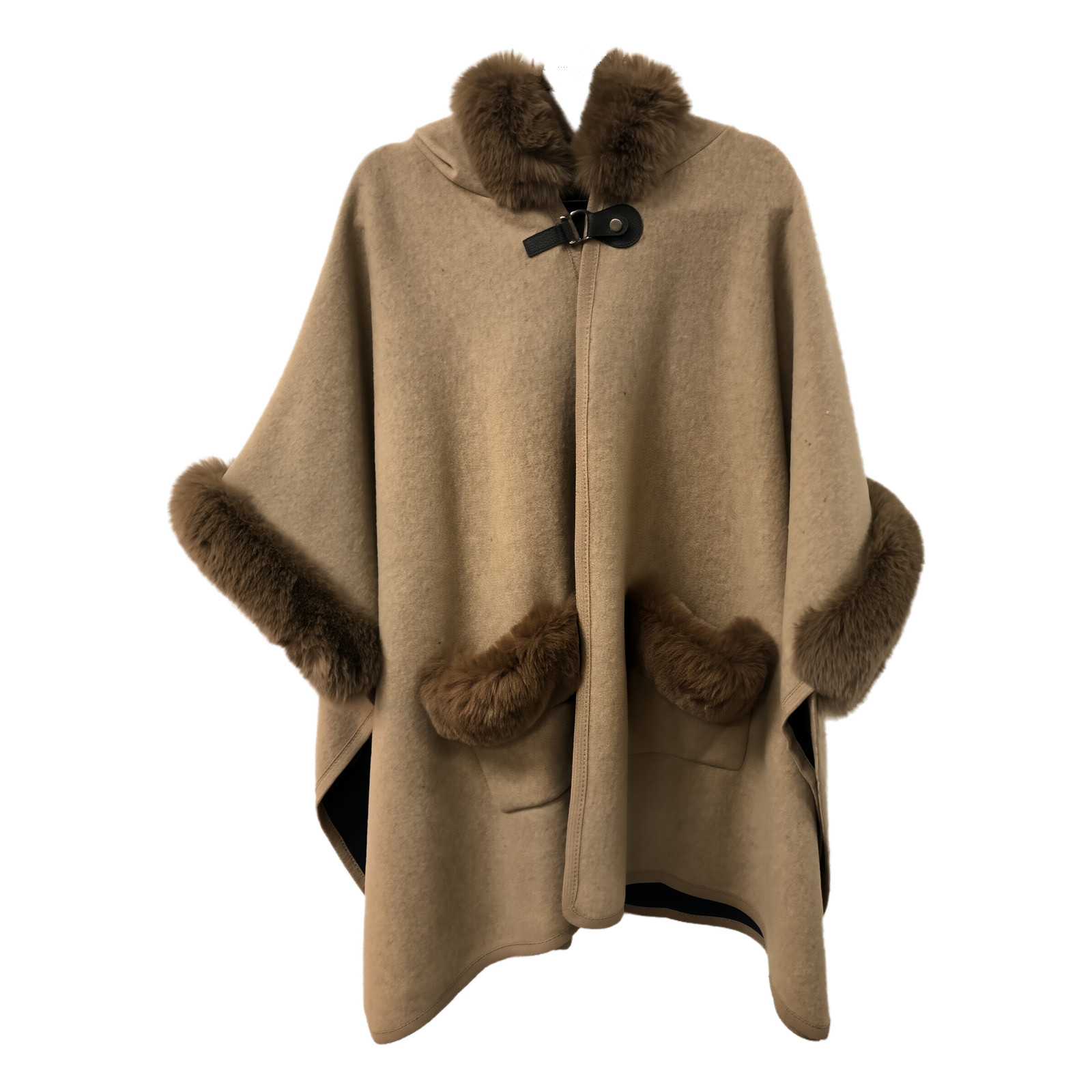Luxurious look with a faux fur cloak & trim on the sleeves